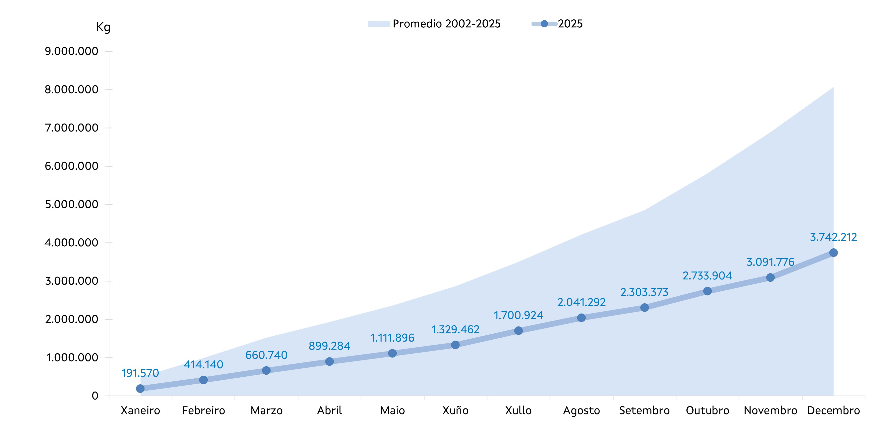 | Longueirón | 68.735 | 779.362 | 74.698 | 783.432 | -5.962 | -4.070 | -7,98% | -0,52% |