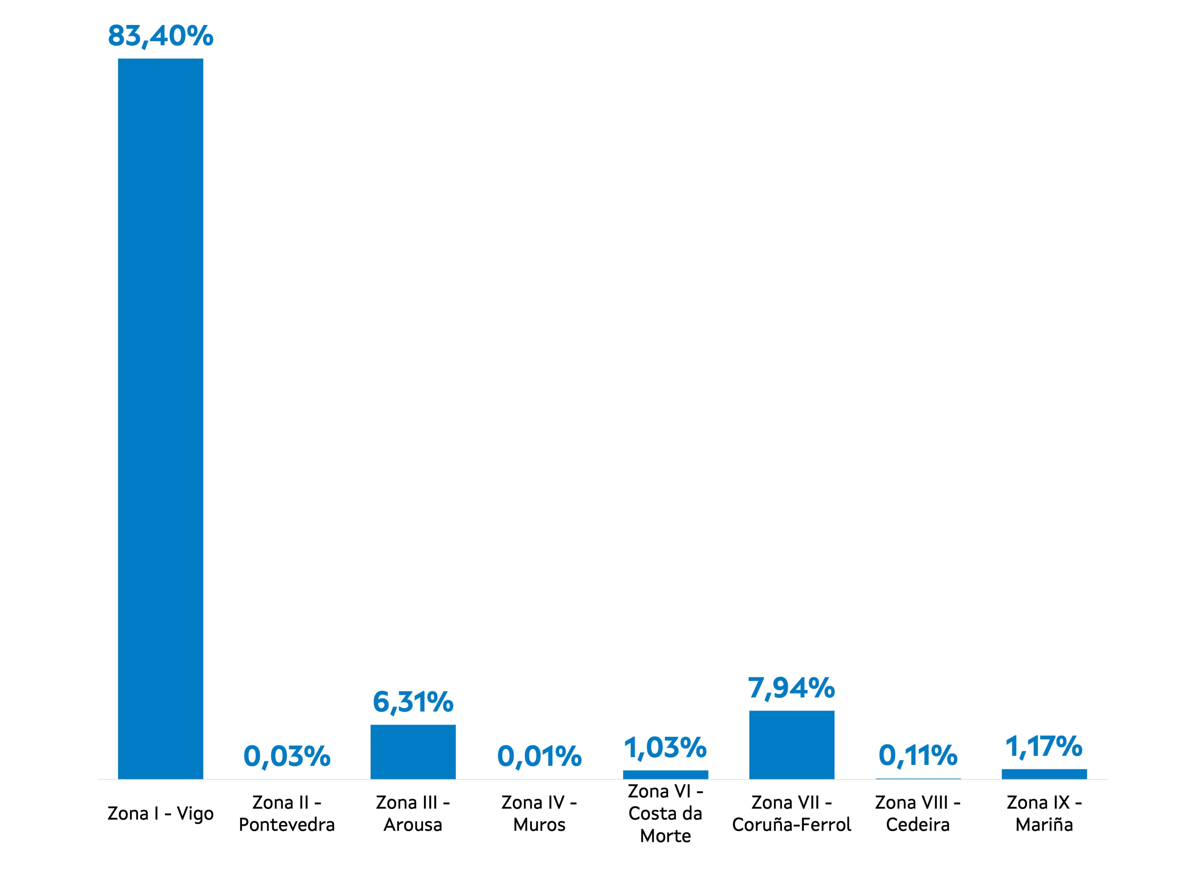 | Zona VII - Coruña-Ferrol | 172 | 71.180 | 7,94% | 591.824 | 8,66% | 8,31 |