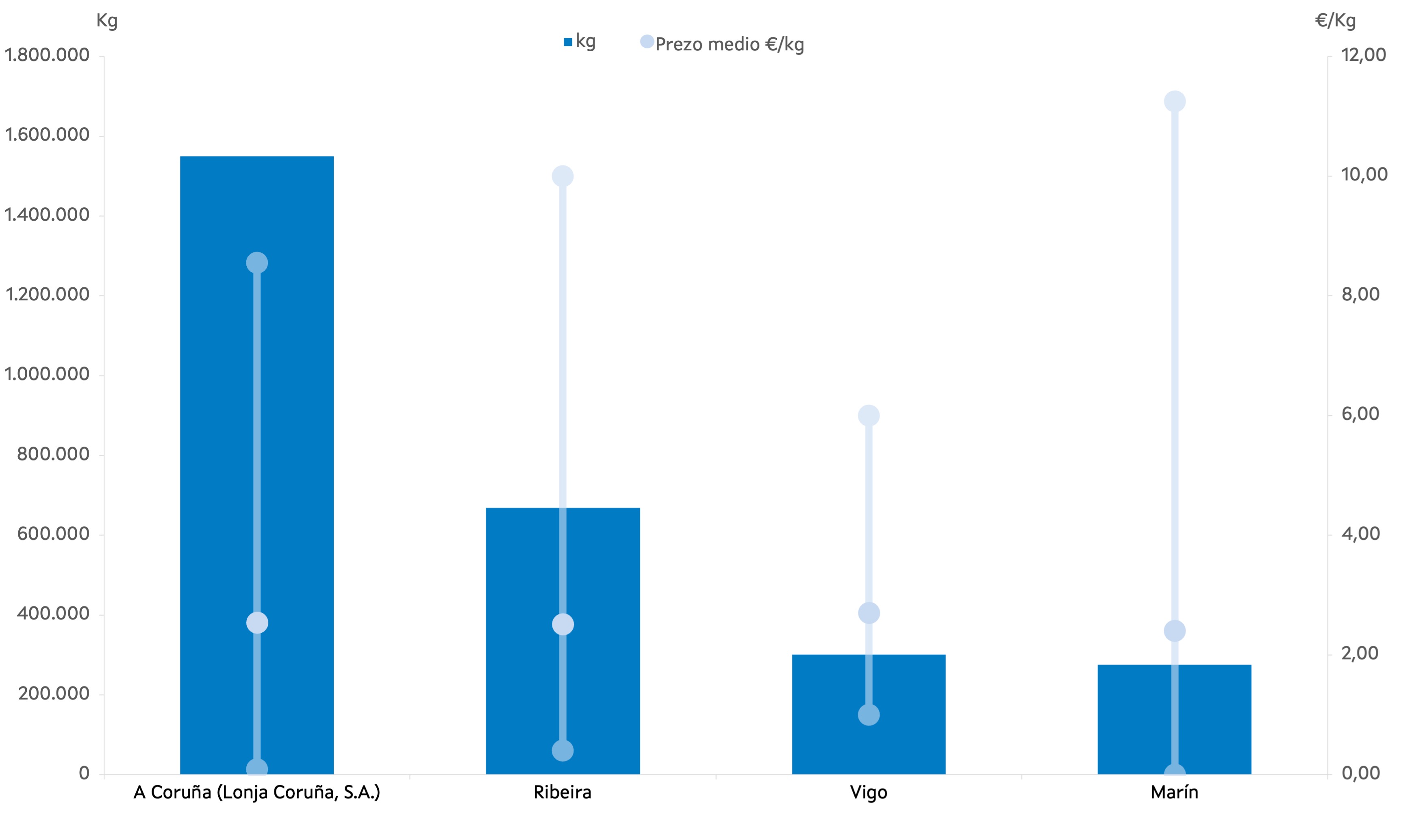 | A Coruña (Lonja Coruña, S.A.) | 252 | 1.549.397 | 53,59% | 3.930.095 | 53,59% | 2,54 |