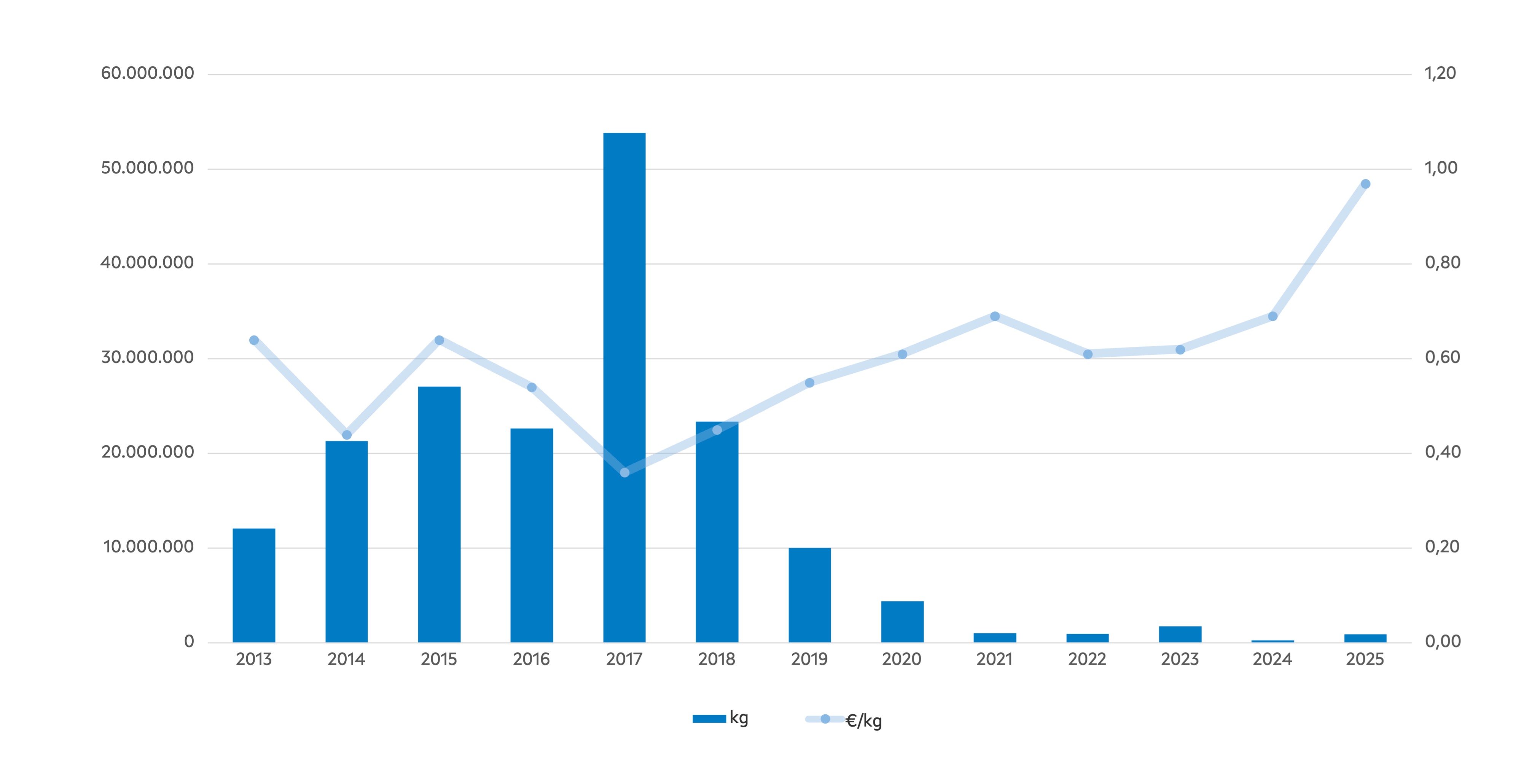 | Evolución das vendas de xarda pintada por zona en cantidade (kg) | |||||||||||||