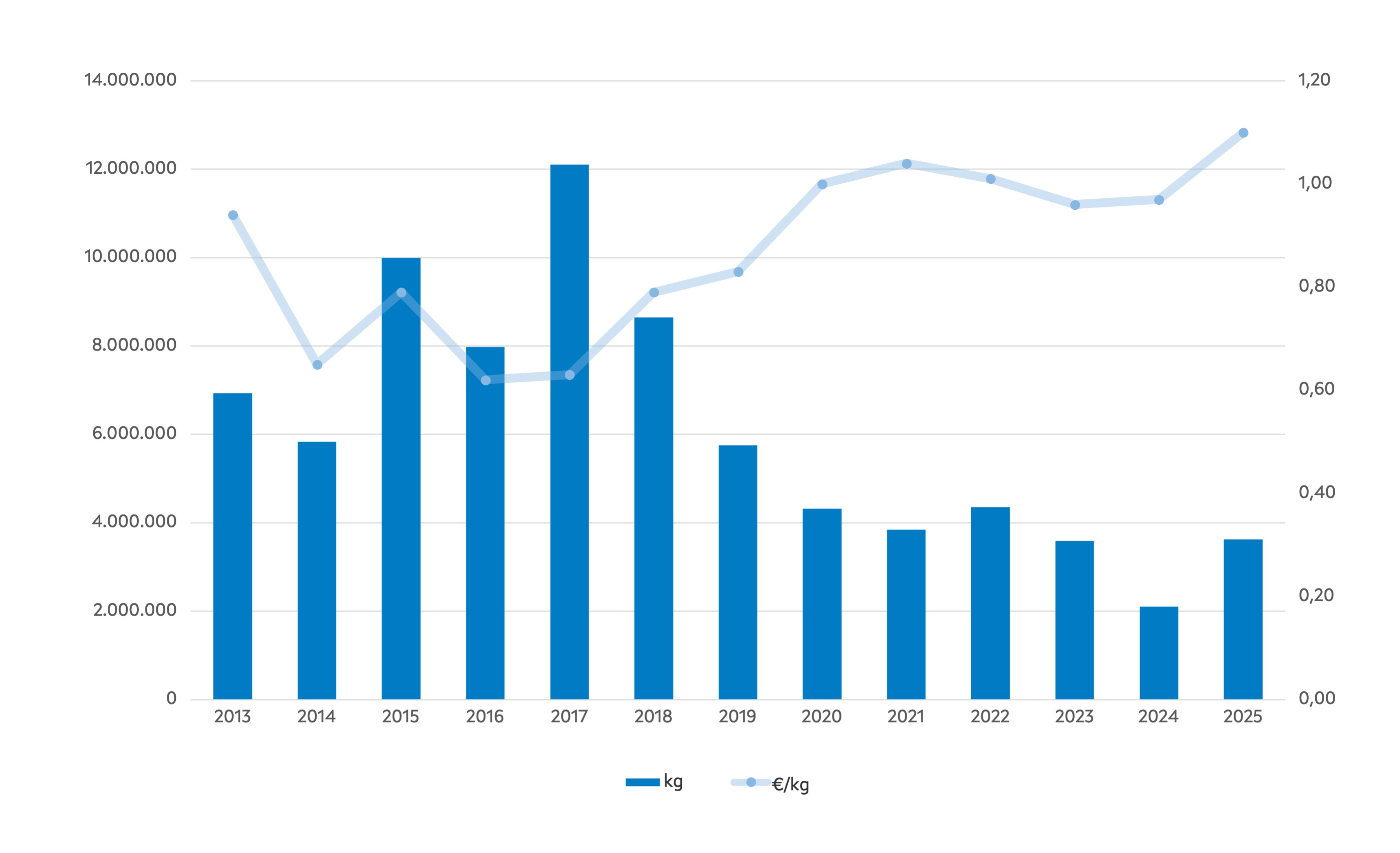 | Nº días | kg | % | Euros | % | Euros/kg | |