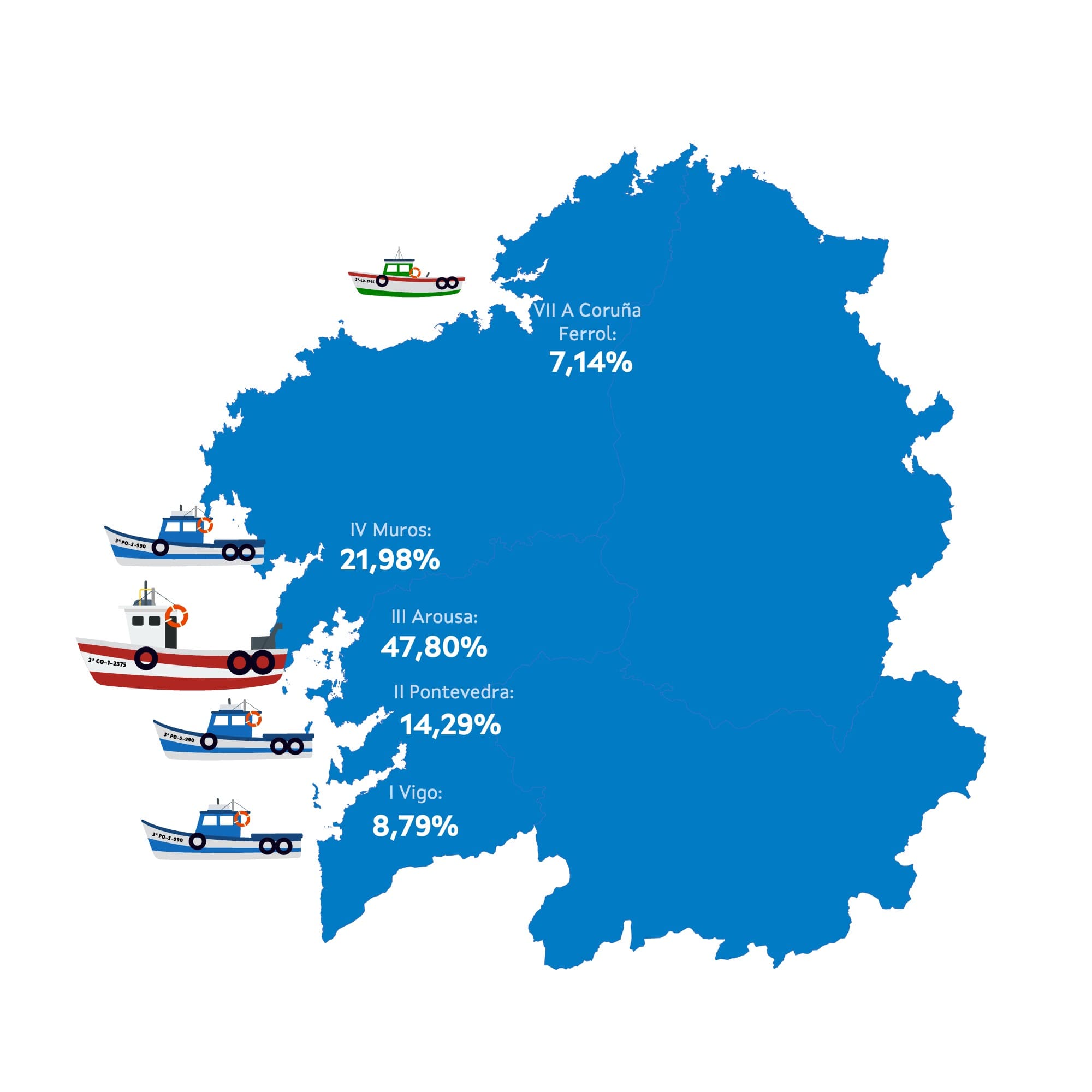| Zona III - Arousa | 87 | 0,00% | 47,80% | -0,26% | 380 | 0,24% | 3.154 | 0,00% |
