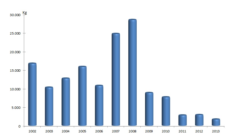 Comparativa da acuicultura do polbo no 2013 e 2012
