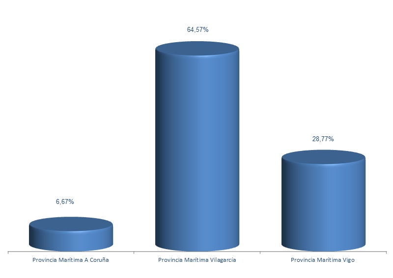 | Provincia Marítima Vilagarcía | 118.263.402 | 64,57% | 47.647.670 | 63,95% | 0,40 |