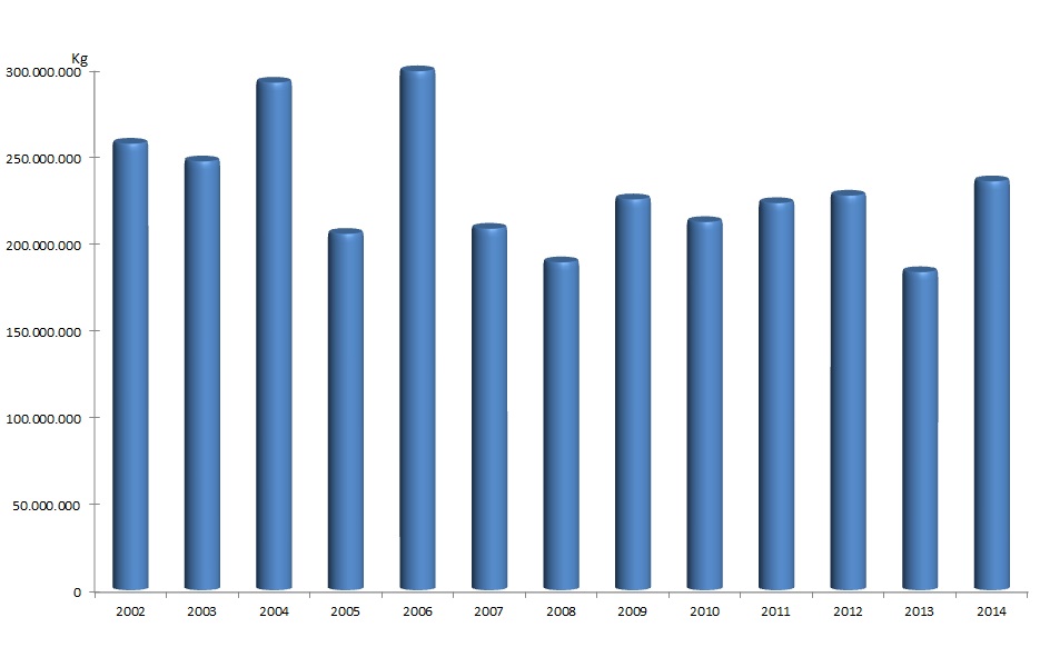 Comparativa de acuicultura do mexillón no 2014 e 2013