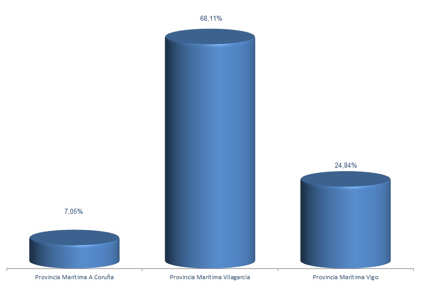 | Provincia Marítima A Coruña | 16.590.979 | 7,05% | 7.093.059 | 7,19% | 0,43 |