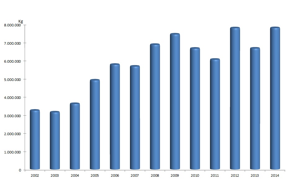 Comparativa da acuicultura do rodaballo no 2014 e 2013