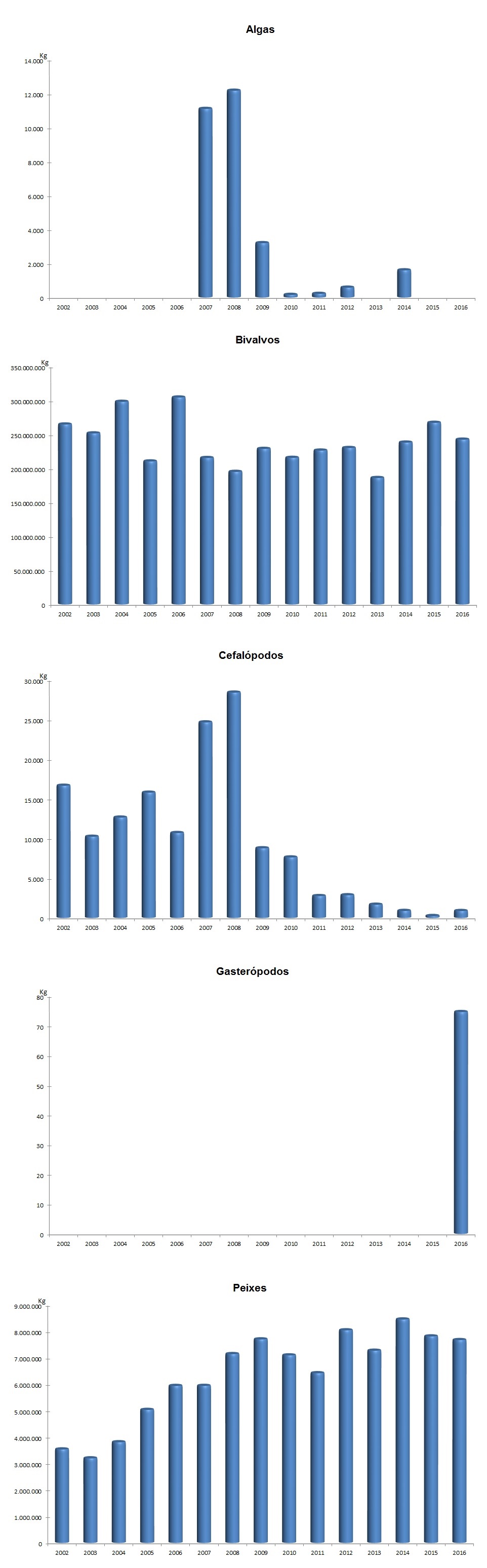 | Cefalópodos | 871 | 6.630 | 239 | 1.433 | 632 | 5.197 | 264,63% | 362,56% |