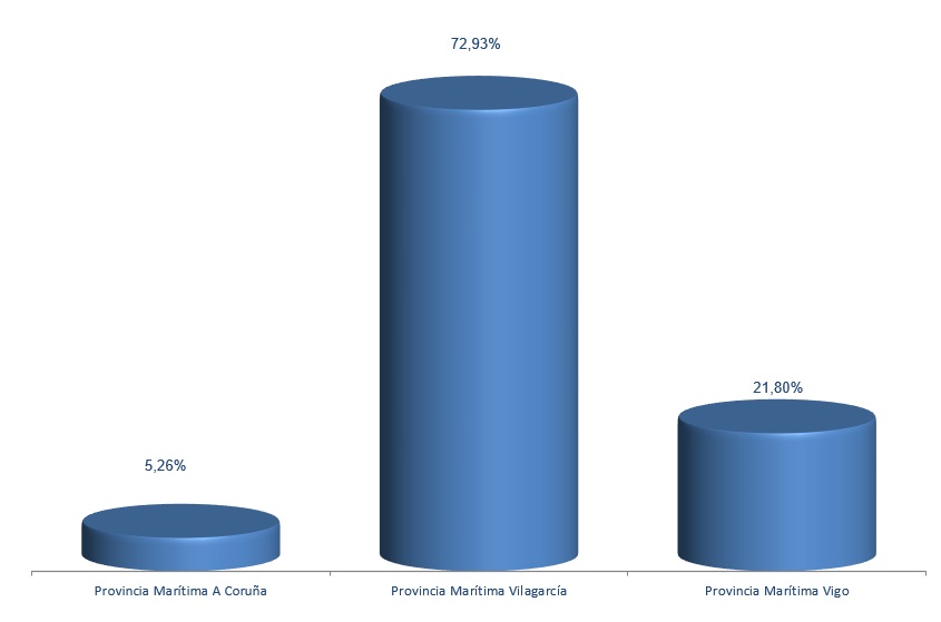 | Provincia Marítima A Coruña | 12.595.380 | 5,26% | 6.369.186 | 5,84% | 0,51 |