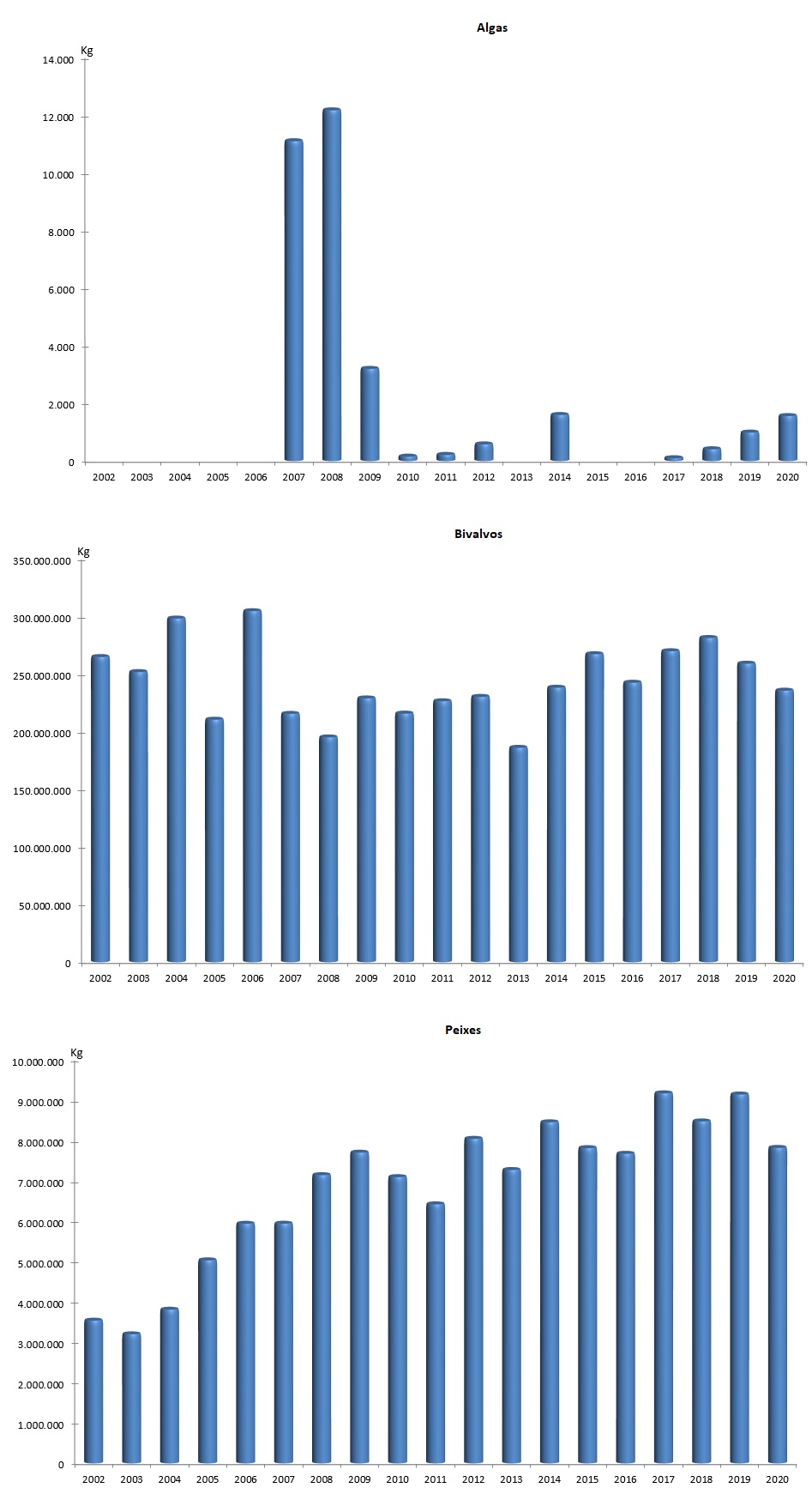 | Bivalvos | 235.578.436 | 125.086.590 | 258.983.768 | 139.486.413 | -23.405.332 | -14.399.823 | -9,04% | -10,32% |
