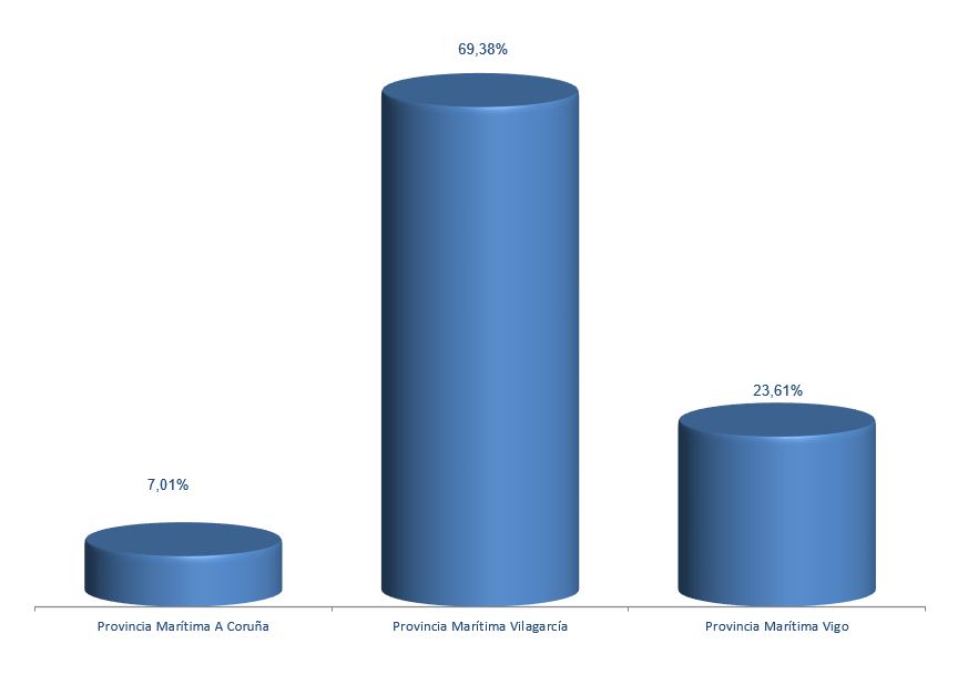 | Provincia Marítima A Coruña | 16.317.480 | 7,01% | 8.237.646 | 8,16% | 0,50 |