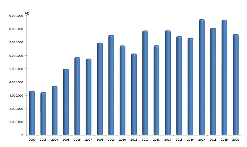 Comparativa da acuicultura do rodaballo no 2020 e 2019