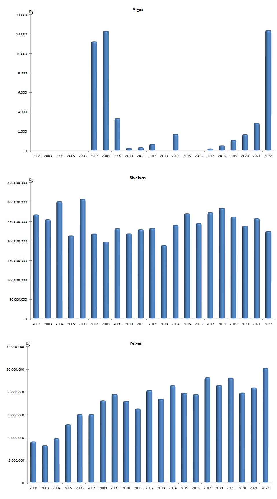 | Bivalvos | 221.948.451 | 165.947.303 | 254.716.457 | 169.645.801 | -32.768.005 | -3.698.498 | -12,86% | -2,18% |