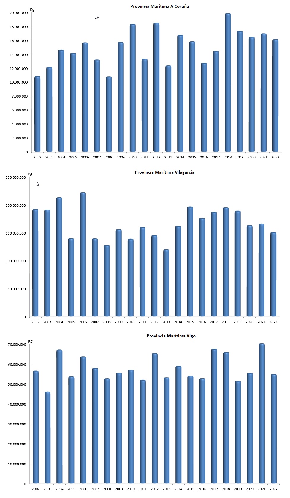 | Provincia Marítima Vilagarcía | 149.358.185 | 100.996.020 | 164.380.842 | 87.520.405 | -15.022.656 | 13.475.615 | -9,14% | 15,40% |