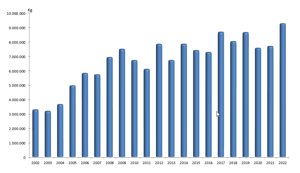 Comparativa da acuicultura do rodaballo no 2022 e 2021
