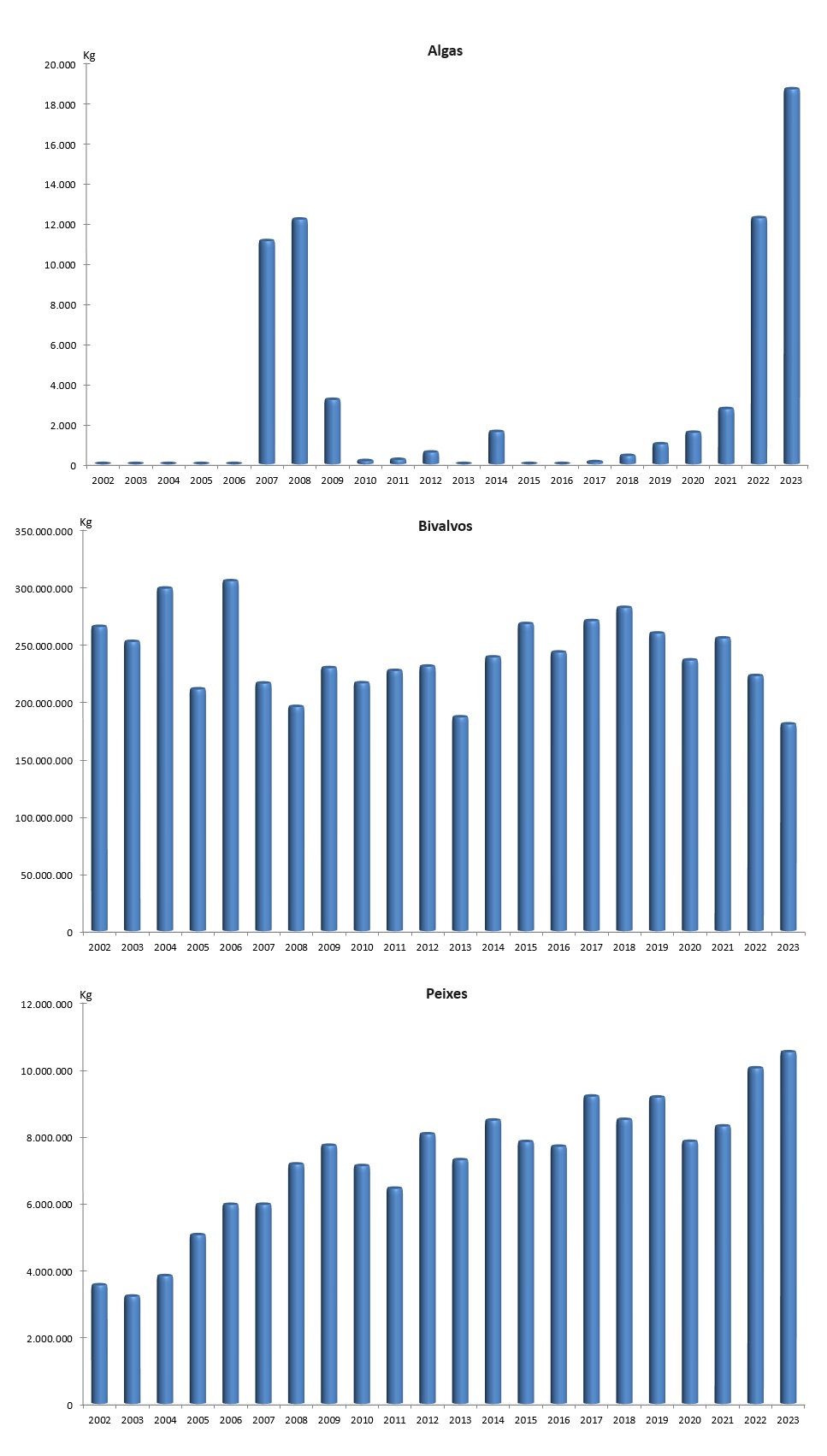 | Bivalvos | 179.896.203 | 134.817.160 | 221.948.451 | 165.947.303 | -42.052.248 | -31.130.142 | -18,95% | -18,76% |