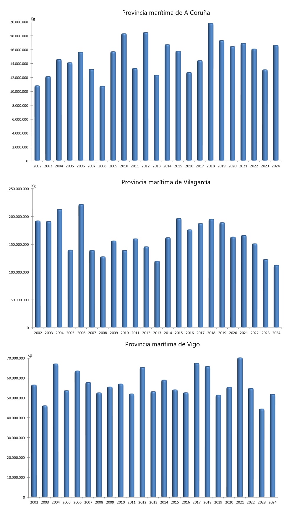 | Provincia Marítima Vigo | 51.372.643 | 40.658.621 | 43.977.646 | 32.061.697 | 7.394.997 | 8.596.923 | 16,82% | 26,81% |