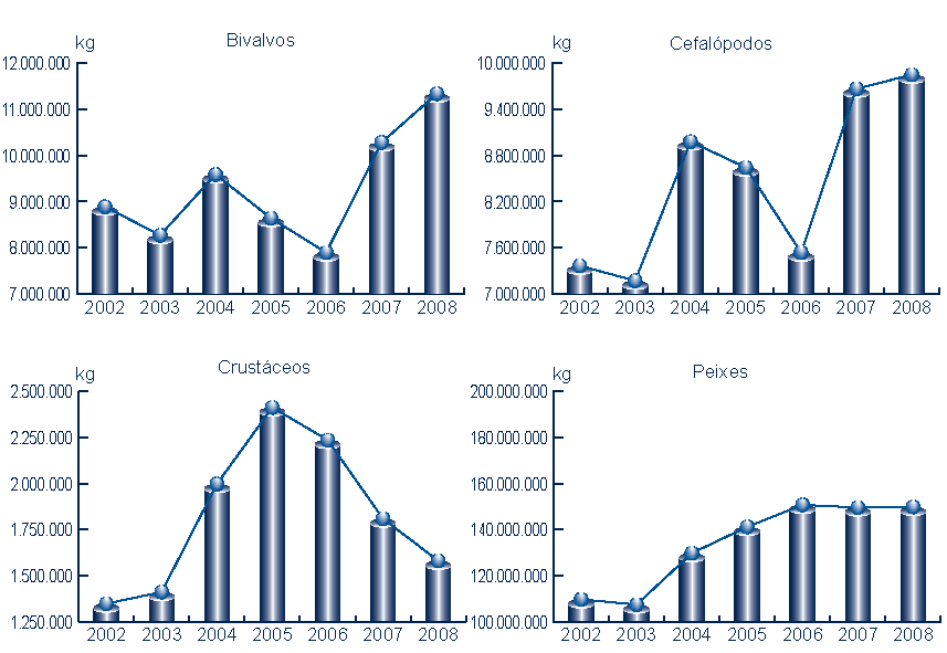 | Cefalópodos | 9.851.795 | 26.963.373 | 9.668.401 | 26.030.221 | 183.394 | 933.152 | 1,90% | 3,58% |