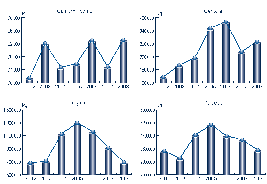 | Camarón común | 83.218 | 2.753.556 | 74.966 | 2.469.831 | 8.252 | 283.725 | 11,01% | 11,49% |