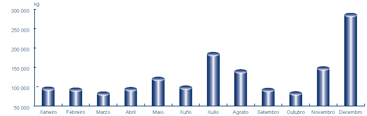| Percebe | 14.676 | 20.614 | 24.000 | 27.991 | 33.846 | 32.447 | 48.078 | 36.424 | 31.472 | 18.315 | 24.727 | 40.072 | 352.661 |