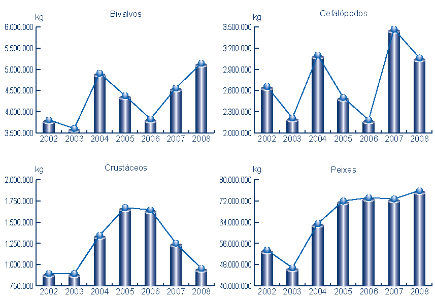 | Cefalópodos | 3.061.072 | 11.184.322 | 3.468.035 | 11.763.767 | -406.962 | -579.445 | -11,73% | -4,93% |