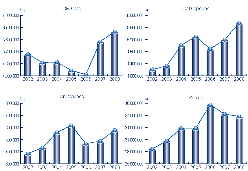 | Cefalópodos | 5.744.238 | 13.391.906 | 5.197.144 | 11.558.113 | 547.094 | 1.833.793 | 10,53% | 15,87% |