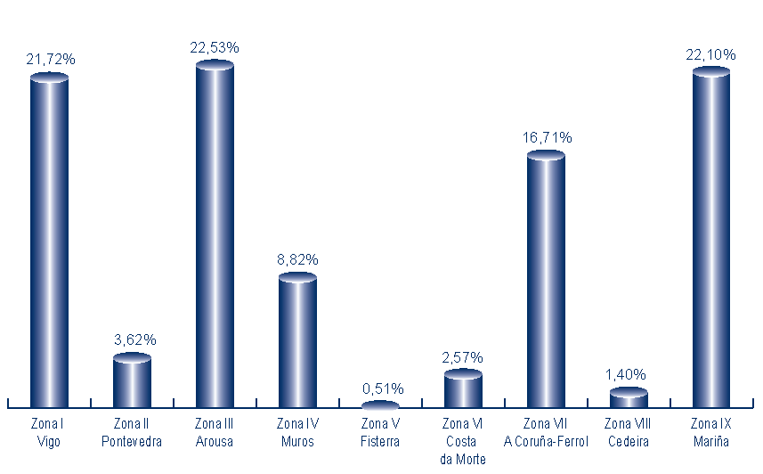 | Zona VIII - Cedeira | 2.436.645 | 1,40% | 9.267.231 | 2,05% | 3,80 |