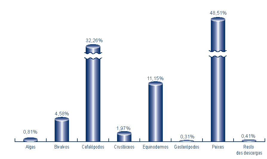 | Cefalópodos | 287.961 | 32,26% | 1.436.060 | 36,37% | 4,99 |