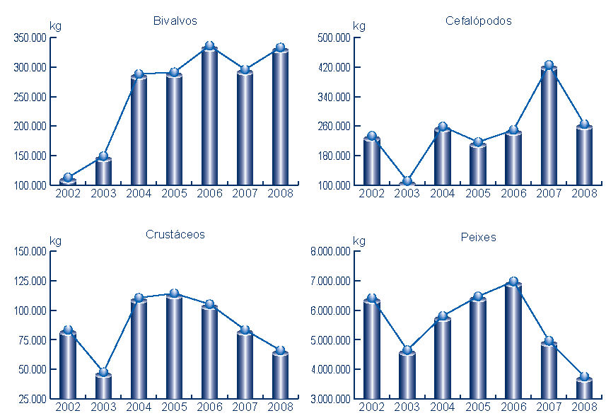 | Cefalópodos | 265.024 | 1.229.345 | 425.407 | 1.979.664 | -160.382 | -750.319 | -37,70% | -37,90% |