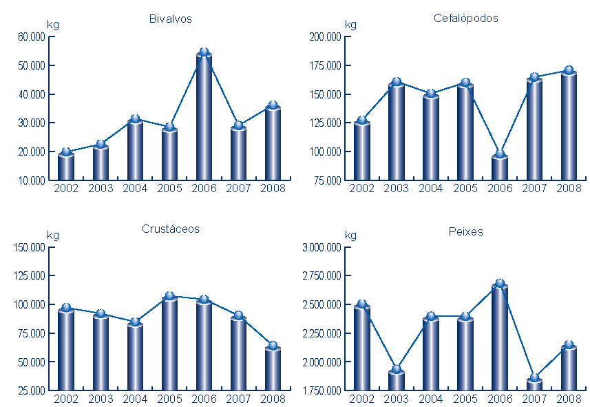 | Cefalópodos | 170.706 | 744.335 | 164.765 | 730.441 | 5.941 | 13.894 | 3,61% | 1,90% |