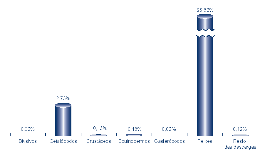 | Cefalópodos | 1.046.484 | 2,73% | 2.387.145 | 2,62% | 2,28 |