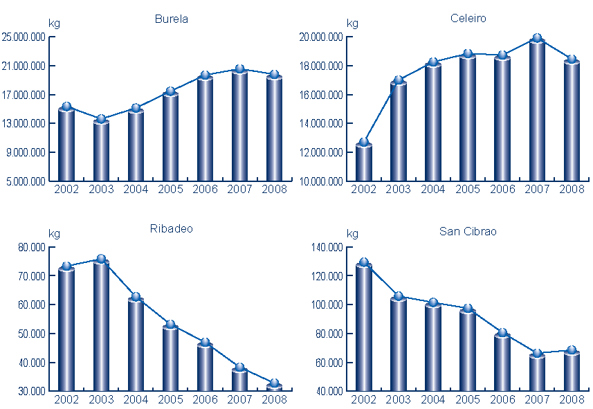 | San Cibrao | 68.551 | 537.454 | 66.348 | 584.718 | 2.203 | -47.264 | 3,32% | -8,08% |