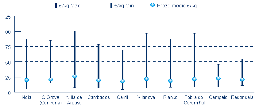 | O Grove (Confraría) | 269 | 86.311 | 11,05% | 1.880.342 | 11,11% | 21,79 |