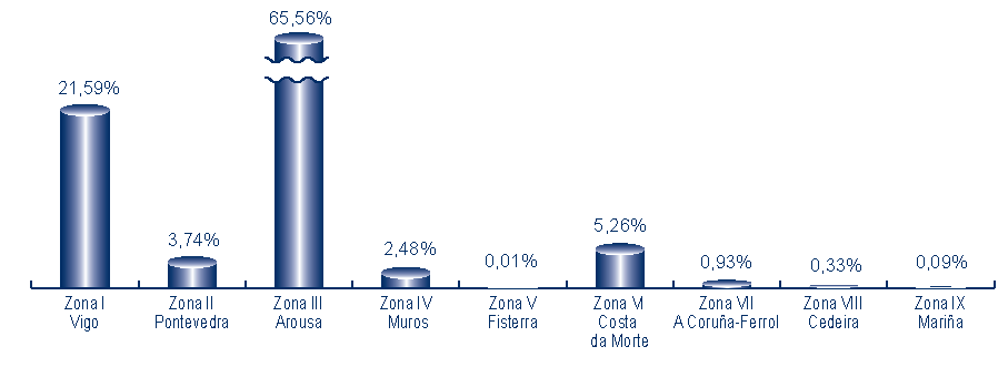 | Zona III - Arousa | 268 | 1.482.808 | 65,56% | 11.965.616 | 66,44% | 8,07 |