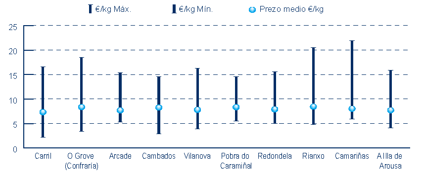 | O Grove (Confraría) | 205 | 248.184 | 10,97% | 2.073.228 | 11,51% | 8,35 |