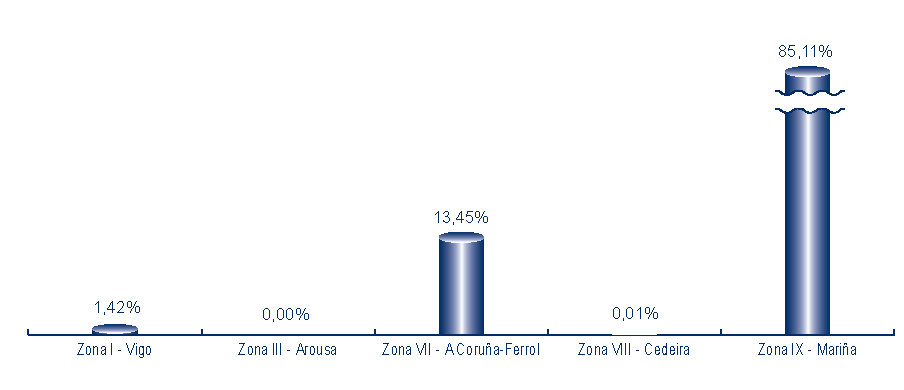 | Zona VIII - Cedeira | 1 | 218 | 0,01% | 663 | 0,01% | 3,04 |