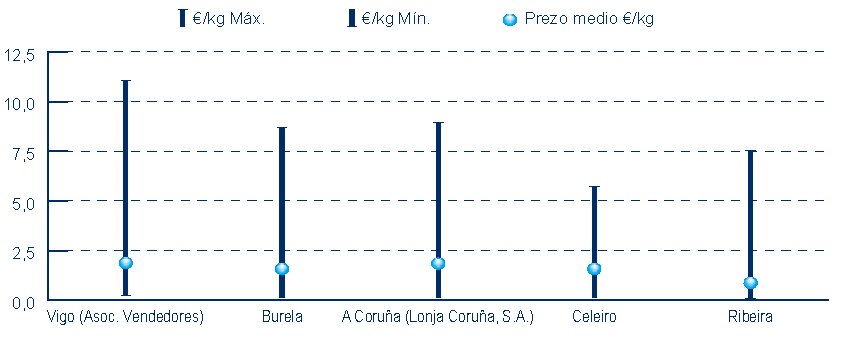 | A Coruña (Lonja Coruña, S.A.) | 126 | 268.820 | 7,50% | 496.908 | 7,78% | 1,85 |