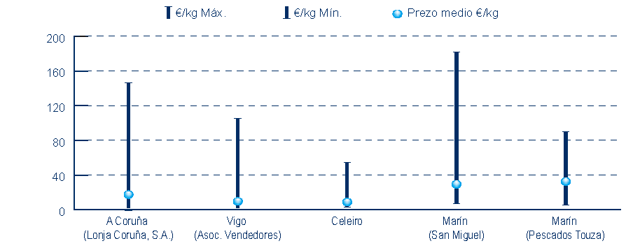 | A Coruña (Lonja Coruña, S.A.) | 273 | 457.955 | 65,94% | 8.039.046 | 75,36% | 17,55 |