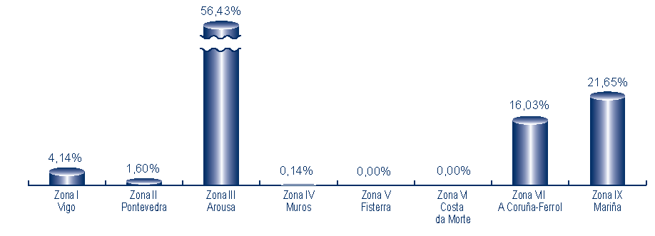 | Zona III - Arousa | 239 | 7.244.682 | 56,43% | 6.399.956 | 56,02% | 0,88 |
