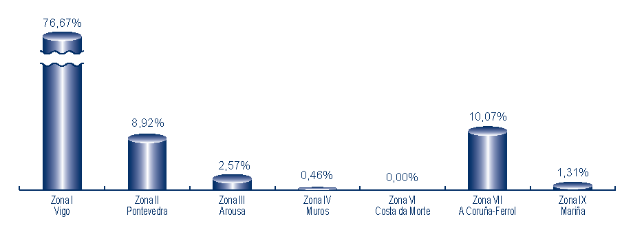 | Zona II - Pontevedra | 235 | 141.893 | 8,92% | 143.863 | 8,98% | 1,01 |