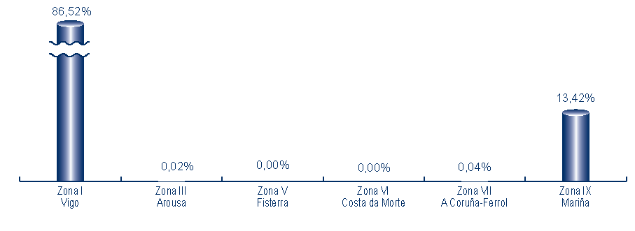| Zona VII - Coruña-Ferrol | 42 | 763 | 0,04% | 531 | 0,02% | 0,70 |