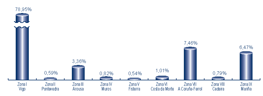 | Zona I - Vigo | 296 | 2.390.461 | 78,95% | 4.179.329 | 77,17% | 1,75 |