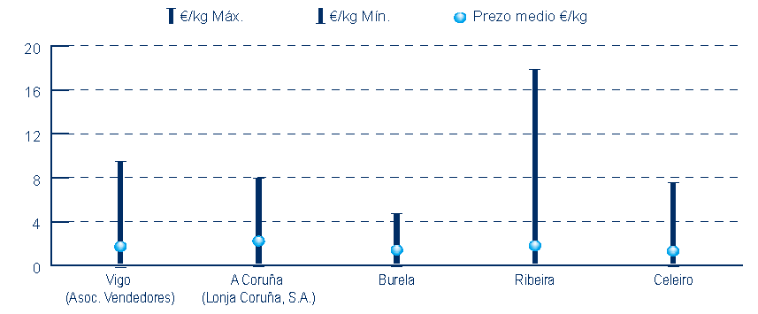 | A Coruña (Lonja Coruña, S.A.) | 284 | 223.849 | 7,39% | 502.020 | 9,27% | 2,24 |