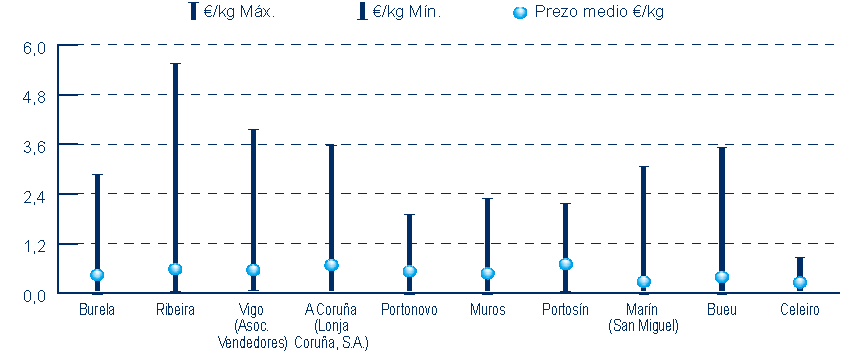 | A Coruña (Lonja Coruña, S.A.) | 239 | 1.183.217 | 7,33% | 804.321 | 9,74% | 0,68 |