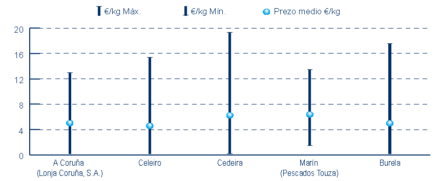 | A Coruña (Lonja Coruña, S.A.) | 275 | 1.079.215 | 54,14% | 5.396.379 | 51,81% | 5,00 |