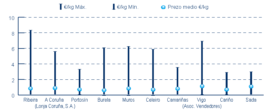 | A Coruña (Lonja Coruña, S.A.) | 267 | 4.621.841 | 19,05% | 4.076.197 | 20,51% | 0,88 |