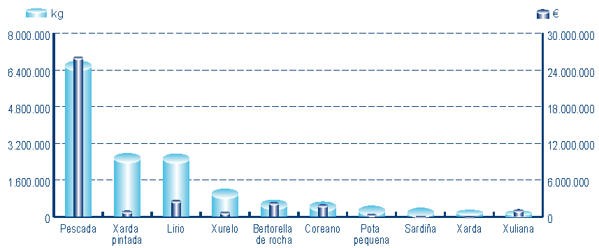 | Xarda pintada | 161 | 2.771.344 | 15,02% | 998.268 | 2,28% | 0,36 |