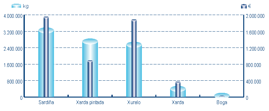 | Xarda pintada | 168 | 2.850.615 | 29,18% | 894.512 | 17,14% | 0,31 |