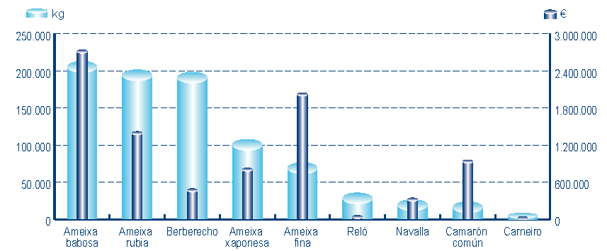 | Camarón común | 241 | 23.844 | 2,64% | 964.807 | 10,66% | 40,46 |