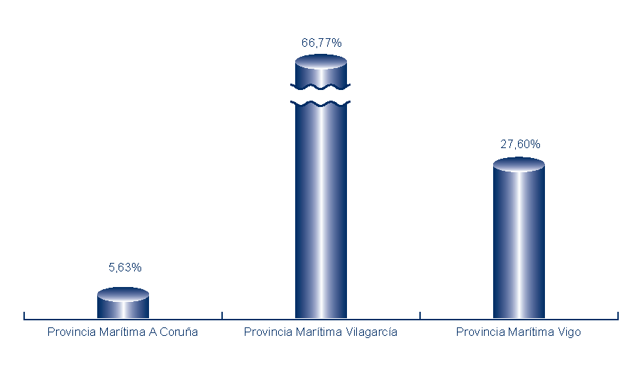 | Provincia Marítima A Coruña | 10.626.270 | 5,63% | 5.320.238 | 6,33% | 0,50 |